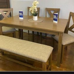 Rokane Brown Rectangular Dining Set 6-Piece (Table+4 Chairs+Bench)📌In Stock💳Financing Options$1,299San Jose, CA