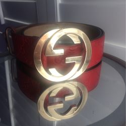 Red Gucci Signature Belt with Gold Buckle - Size 36$199San Jose, CA