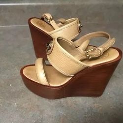 Tory Burch Designer Beige Peep Open Toe Leather Wedge Pumps Heels Shoes Size 6$89Los Gatos, CA