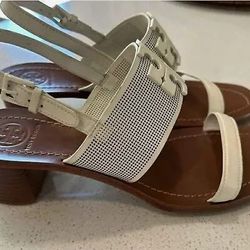 Tory Burch Designer Lowell 2 Logo City Sandal Ivory Block Heel Sandals 9.5$129Los Gatos, CA