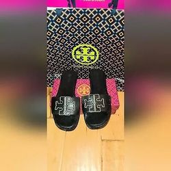 Tory Burch Designer Black Double T Slides Leather Sandals Size 10$135Los Gatos, CA