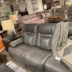 Wurstrow Smoke Leather Power Reclining Sofa