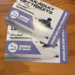 Sierra At Tahoe 2 Day Lift Tickets (two of them)$340San Jose, CA