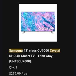 Samsung 43″ 4K Smart TV$120Rancho Santa Margarita, CA