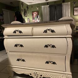 A French Provincial Style Bombé Chest In Distressed Cream Dresser$50Perris, CA