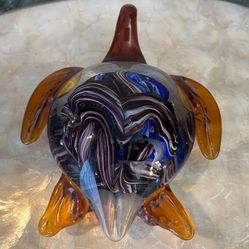 Adorable Murano Style Cased Art Glass Hand Blown Amber Sea Turtle W/Multicolored Body$18Oceanside, CA