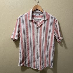 Men’s Medium ZARA Pink White Striped 100% Cotton Short Sleeve Button Up Shirt$20Menifee, CA