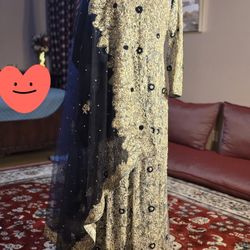 Pakistani/Indian Dress Deep Ocean Color Valvet With Intricate Gold Embroidery And Beadwork. US Large Size$200Moreno Valley, CA