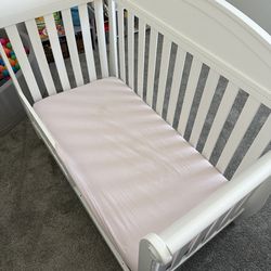5 In 1 Convertible White Crib With Wheels With Mattress $150Temecula, CA