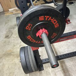 Bench press with 7ft 45lbs bar and 220lbs of Olympic weights$280Moreno Valley, CA