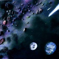 Space art painting with 3d parts on five foot wooden plank$150Menifee, CA