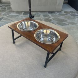 Elevated Dog Bowls, Stainless Steel bowls move wood and wrought iron stand$15Murrieta, CA