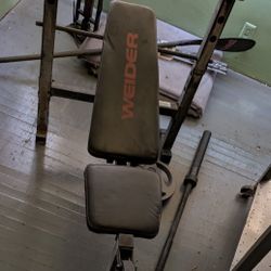 Olympic Weight Bench Bench Press, Barbell, Curl Bar, Weights. $340Murrieta, CA