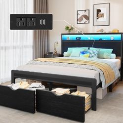 queen bed frame platform bed/charging station &built in LED light.$350Escondido, CA