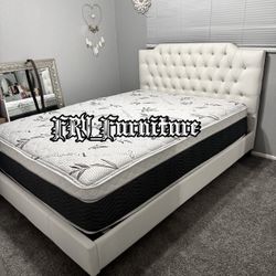 Queen White Tufted Platform Bed w. Drawer & Orthopedic Mattress Included $359Riverside County, CA