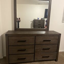 4 Piece Bedroom Set 1 Size Queen Bed Frame 1 Nightstand 1 Dresser 1 Mirror Brand New In Box Firm Price $1,600 Mirrored And Grey Velvet Tufted $1,600Moreno Valley, CA