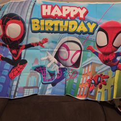 Spiderman And Friends Birthday Set Backdrop Tablecloth Banner Streamers Ballons Cake And Cupcake Toppers $20Hemet, CA