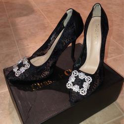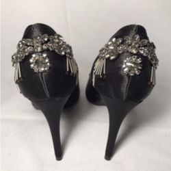 Black satin jeweled pumps heels$20Carlsbad, CA