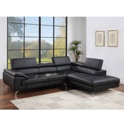 Black Faux Leather Sectional Chrome Legs Brand New In Box Firm Price $620 With Adjustable Headrest$620Moreno Valley, CA