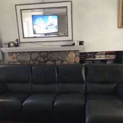 Black Faux Leather Sectional Chrome Legs Brand New In Box Firm Price $620 With Adjustable Headrest$620San Marcos, CA