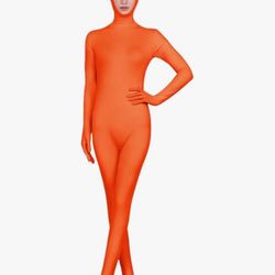 Small/Medium Open Face Bodysuit Costume Adult Cosplay Stretchy Jumpsuit Zipper Outfit for Men Women Halloween Body Suit (Orange$20Hemet, CA