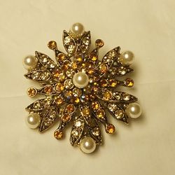 Pretty Faux Pearl, crystal Brooch In Gold-tone.$5Vista, CA