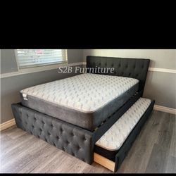 Full Twin Grey Frenchi Trundle Bed With Ortho Mattress Included!!$479Riverside, CA