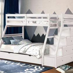 Brand New White Twin Over Full Bunk Bed w Staircase (Trundle Sold Separately)$699Moreno Valley, CA