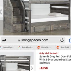 Twin/Full Gray Bunk bed w. Drawers & Ortho Mattresses Included $625Riverside County, CA