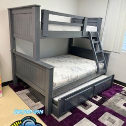 Triple Bunk Bed Grey With Mattress Trundle $1,299Moreno Valley, CA