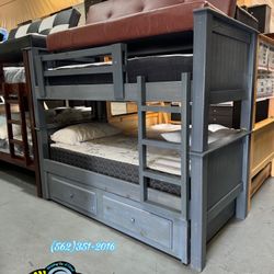 Twin/Full Gray Bunk bed w. Drawers & Ortho Mattresses Included $599Moreno Valley, CA