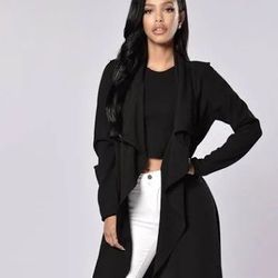 Fashion Nova Long Black Belted Wide Lapel Cardigan Size Medium Excellent Preloved Condition $14Perris, CA
