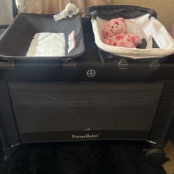 4 in 1 Portable Baby Crib, Deluxe Nursery, Foldable Travel Crib with Bassinet, Mattress, Changing Table for Newborns, Infants and Toddlers in good con$30Wildomar, CA