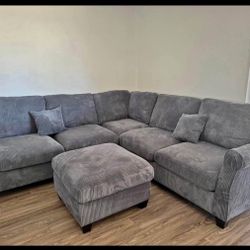 Dark gray corduroy sectional sofa with storage ottoman and Usb port $429Riverside County, CA