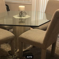 MCM Travertine & Glass Hexagon Table w/4 Chairs$300Menifee, CA