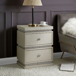 Brand New End Table Nightstand Wrapped In Faux Leather And Stunning Crystal Diamonds For A Vintage Hollywood Glam The Leather Is Ivory Color $250Moreno Valley, CA