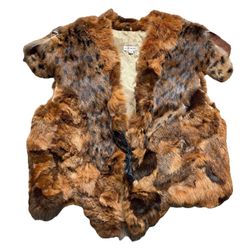 Rabbit Fur Patchwork Vintage Fur Vest Fully Lined Leather Ribbon Tie Size Large$50San Marcos, CA