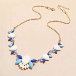 New - Blue & White Rhinestone Water Drop Rhinestone Necklace Gold Color Chain - Women’s Jewelry $4San Jacinto, CA