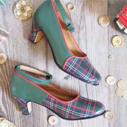 Elena - Pumps in Leather and Fabric, High Heels, Comfortable Women Shoes, Handmade in Argentina, Vintage Shoes.$85San Marcos, CA