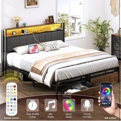 King Size Bed Frame With Charging Station And LED Lights $145Moreno Valley, CA