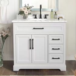 Washington 36 in. W x 21.5 in. D x 35 in. H Single Sink Freestanding Bath Vanity in White with White Carrara Marble Top$300Temecula, CA