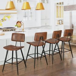 New Set Of 4 Counter Height Barstools Brown Faux Leather$140Temecula, CA