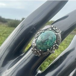 Vintage Sterling Silver Floral Leaf Ring with Chrysocolla & Azurite Stone$80Carlsbad, CA