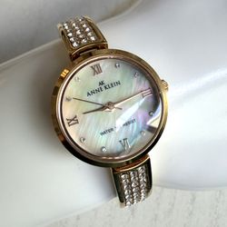Anne Klein AK Gold Tone Watch Mother of Pearl Dial Crystal Accents Water Resist$35Carlsbad, CA