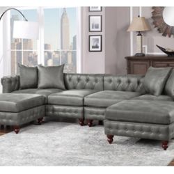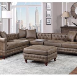 Brand New Gray Leather 4pc Tufted Sectional Sofa With Ottoman $1,399Murrieta, CA