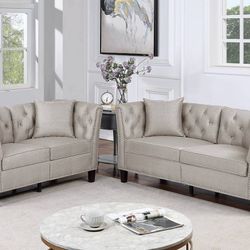 SAND BEIGE LINEN LIKE FABRIC 2 PIECE LIVING ROOM FURNITURE SET SOFA LOVE SEAT COUCH - SILLONES JUEGO DE SALA$899Moreno Valley, CA