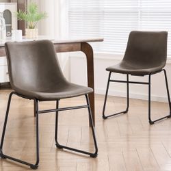 Mid Century Modern Dining Chairs Vegan Leather Upholstered Accent Chairs Metal Black Legs Dark Cappuccino Brown Set Of Two (Please Read Description)$235Carlsbad, CA