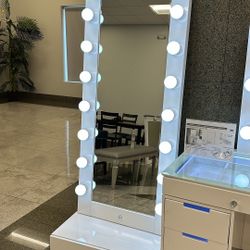 Glossy White Floor Mirror With Hollywood Lights And A Storage Drawer Brand New Firm Price $280$280Moreno Valley, CA