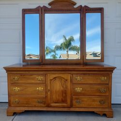 BEAUTIFUL RARE SOLID MAPLE DRESSER WITH TRIPLE MIRROR CAN DELIVER LOCAL IF NEEDED$475Mission Viejo, CA
