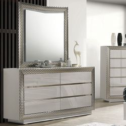 Brand New Gray Chrome Metal Glam Dresser Master Size With Stunning Accent Mirror Very Heavy Solid Wood$775Corona, CA